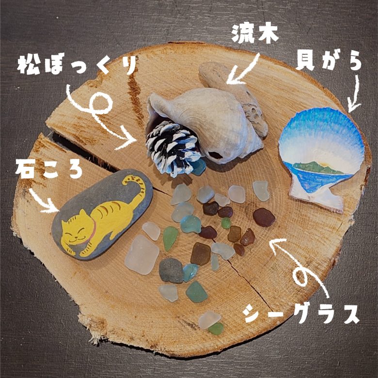 ひとつとして同じものがない自然の素材を選んで、まさに「世界にひとつだけ」の作品を