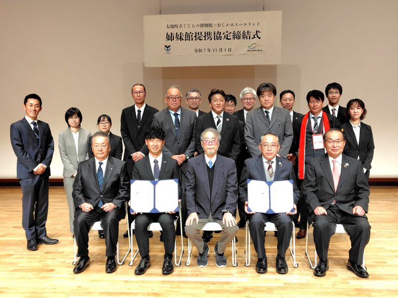 2025年11月1日(土)、おしかホエールランドは太地町立くじらの博物館(和歌山県東牟婁郡 稲森大樹館長)と、「全国鯨フォーラム2025 石巻」(石巻市、石巻くじら振興協議会、一般財団法人日本鯨類研究所主催)を契機として姉妹館提携を締結しました。