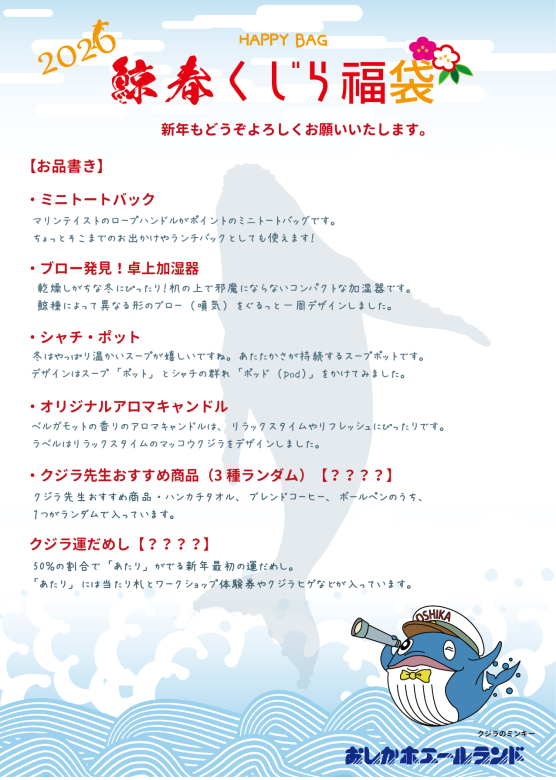 2026年も当館オリジナルグッズが詰まったくじら福袋(数量限定)を販売いたします🎊